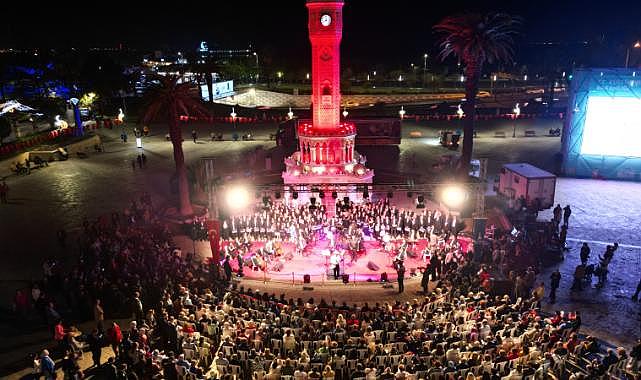 Klasik Türk Müziği Korosu, Yarımada Türk Müziği Korosu, ESHOT Türk Müziği Korosu ve İtfaiye Türk Müziği Korosu’ndan oluşan İzmir Büyükşehir Belediyesi korolarının bulunduğu 100. Yıl Cumhuriyet Özel Korosu, izleyenlere unutulmaz anlar yaşattı. İnanç Menekşe şefliğinde sahneye çıkan koronun konuğu da Milli Bayramlar Komitesi Başkanı Ulvi Puğ oldu.