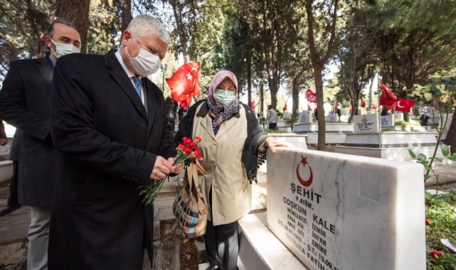 Törende İzmir Valisi Yavuz Selim Köşger, şehitlik defterini imzaladı. Ardından deftere yazdıklarını okuyan Köşger, “Sadece aziz milletimiz için değil, dünya tarihi için de önemli dönüm noktalarından biri olarak kabul edilen Çanakkale Zaferi, yok edilme noktasına getirilen bir milletin, tüm imkansızlıklara rağmen, kutsal değerleri, istiklali, vatanı ve onuru uğruna yedi düvele karşı nasıl bir kahramanlık sergilendiğini cümle cihana kanıtladı” dedi. Törende şehitler için dua okunmasının ardından Kadifekale Şehitliği'ndeki kabirlere karanfil bırakıldı.