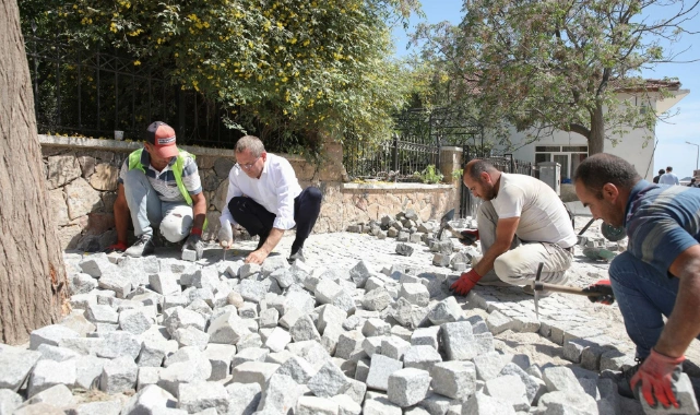 Tarihi kent sokaklarının dokusuna uygun olarak 1.648 metre kare andezit taşı, asfalt yolların bakım onarım çalışmaları için ise 1.960 ton roadmix ve binder malzeme, yeni yol yapımlarında 5.215 metre granit ve beton oluk malzeme döşendi. İmara açılan kamu yollarına ise 22 bin ton stabilize malzeme, gerekli iyileştirmeler yapılarak araç trafiğinin kullanımına açıldı. Altınova Mahallesi İskele mevkiinde Kum Adası’nda üç bin metre karelik bir alan 40x40 ebatlarında karo taşıyla kaplandı.