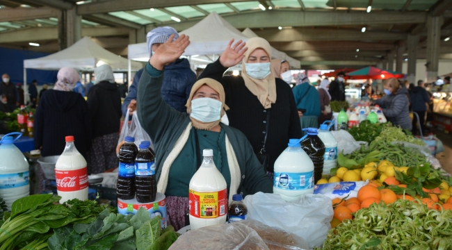 Aliağa Belediyesi Zabıta ekipleri, Kovid-19 kuralları kapsamında daha düzenli bir hale getirilen pazaryerine tüm vatandaşların maskeli girişleri konusunda tedbirler alıyor, pazarcı tezgâhlarının sarı çizgilerle belirlenen sınırlar dışına çıkmasına da izin verilmiyor. Aliağalılar bu sayede daha geniş ve rahat bir ortamda alışverişlerini yapabiliyor.