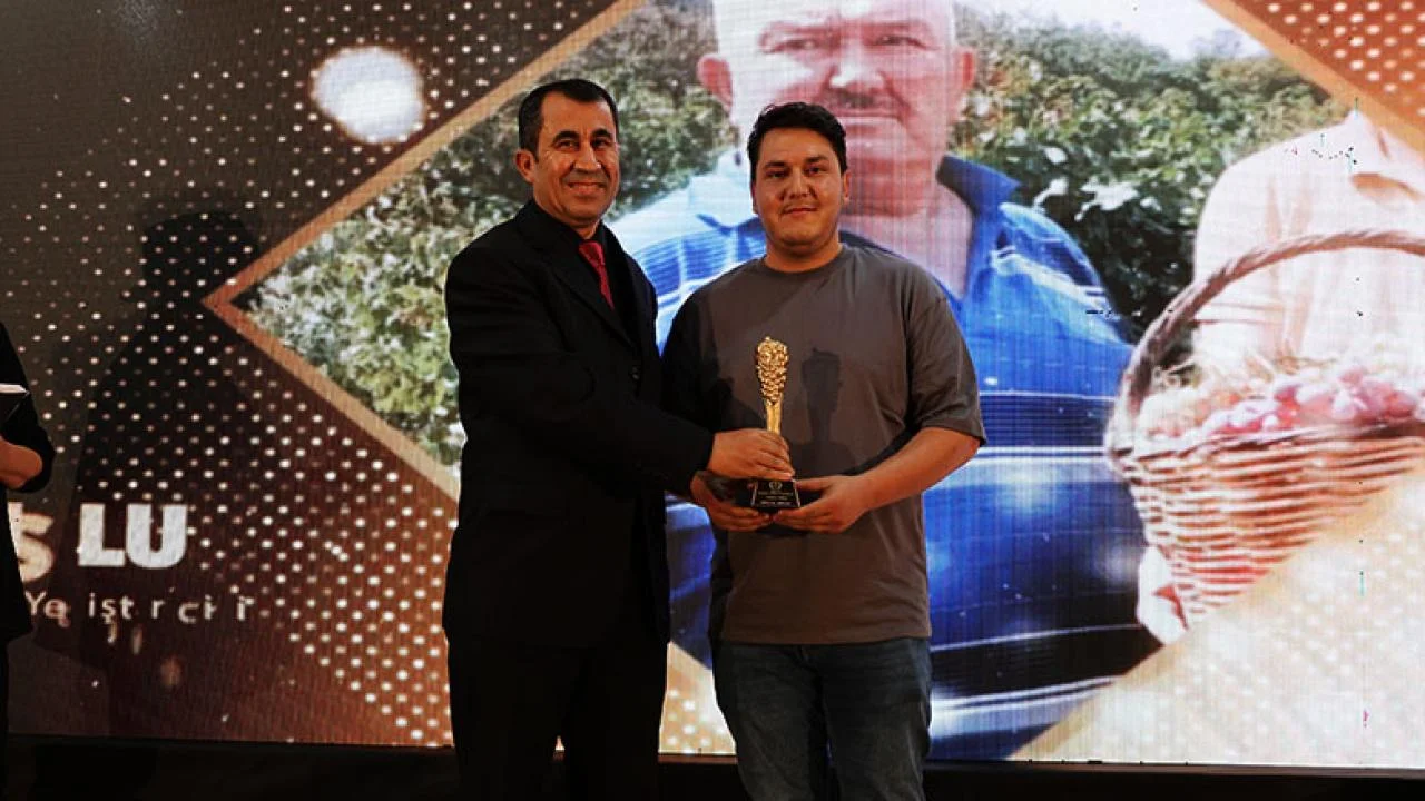 2025 yılı “En Başarılı Üzüm Üreticisi Ödülü”, tarıma olan adanmışlığı, toprağa sevgisi ve üretime verdiği katkılarla bilinen Cumhur Uslu’ya layık görüldü. Sağlık sorunları nedeniyle geceye katılamayan Cumhur Uslu’nun ödülünü, oğlu Kerem Uslu sahneye çıkarak aldı.