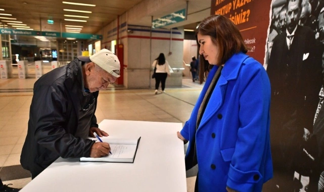 İzmirliler gün boyunca Konak, Ege Üniversitesi, Fahrettin Altay, Üçyol ve Çankaya metro istasyonlarında, Karşıyaka, Bostanlı, Konak, Alsancak vapur iskeleleri ile Şirinyer, Gaziemir, Halkapınar İZBAN istasyonlarındaki anı defterlerine duygularını aktarabilecek. Anı defterlerindeki satırlar Ahmet Piriştina Kent Arşivi ve Müzesi (APİKAM) tarafından “Senin Atatürk’ün” başlığıyla Konak Meydanı’ndaki sergi alanında ziyarete açacak.