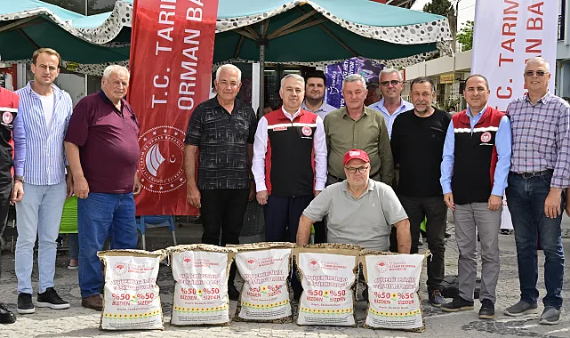 Menemen İlçesi Seyrek Mahallesinde düzenlenen etkinlikle Menemen, Aliağa ve Çiğli’de ayçiçeği üretimi gerçekleştiren 45 üreticiye toplamda 2.125 da alanda ekimi gerçekleştirilmek üzere 85 torba TR 2242 CL yerli hibrit ayçiçeği tohumu teslim edildi.