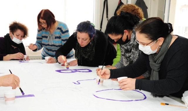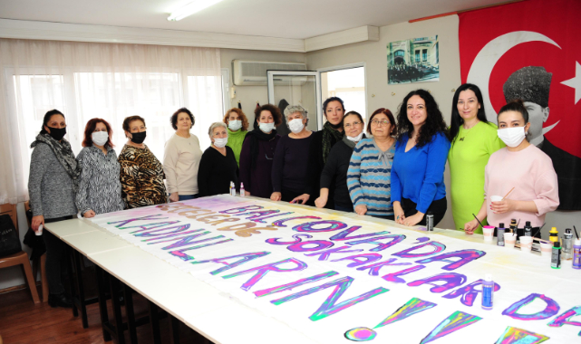 8 Mart Dünya Kadınlar Gününde “Gece Kadın Yürüyüşü” düzenleyecek olan Balçova Belediyesi hazırlıklarına devam ederken Balçovalı Kadınlar da yürüyüşte taşıyacakları pankartları hazırlıyorlar.