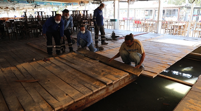 İzmir Büyükşehir Belediyesi 6,9 büyüklüğündeki Ege depreminin ardından Seferihisar Sığacık’ta meydana gelen tsunaminin zarar verdiği balık hali ve balıkçılar çarşısında çalışmalarını sürdürüyor. Ahşap kaplamaları tamamen zarar gören çarşı, İzmir Büyükşehir Belediyesi ekiplerince yenileniyor. Çarşının içinde parke taşlarının zarar gördüğü yerler de belirlendi. Ekipler yolların bozulan noktalarını, parke taşı döşeyerek yeniledi.