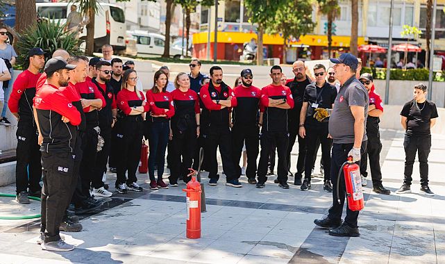 İlk olarak, İzmir Büyükşehir Belediyesi İtfaiye Daire Başkanlığı'ndan gelen eğitmenler, belediye meclis salonunda yangın söndürme eğitimi verdi. Bu eğitimin ardından, hizmet binasında sirenler çalarak personelin de katılımıyla yangın tatbikatı yapıldı. Tatbikat kapsamında, hizmet binasının önündeki Cumhuriyet Meydanı'nda da yangın söndürme uygulaması gerçekleştirildi.