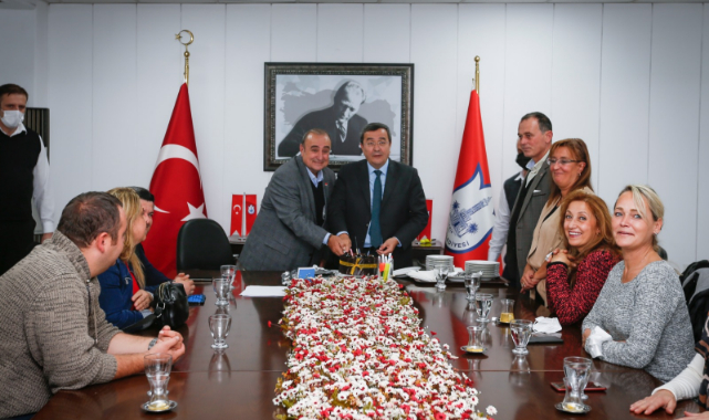 CHP Konak İlçe Başkanlığı görevine getirilen Akın Küçükoğullarından ve Yönetim Kurulu Üyeleri, Konak Belediye Başkanı Abdül Batur’u, makamında ziyaret ederek birliktelik mesajı verdi. Yeni ilçe başkanı ve yönetim kurulu üyeleri, Başkan Batur’a doğum günü sürprizi de yaparak birlikte pasta kesti.