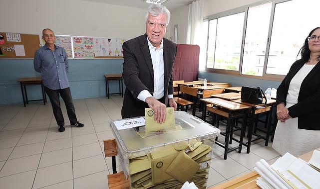 Narlıdere Belediye Başkanı Ali Engin, oyunu Narlı Mahallesi’nde yer alan İlhan Onat İlkokulu’nda kullandı.