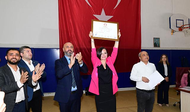 31 Mart Yerel Seçimleri’nde büyük bir başarıya imza atarak seçimleri kazanan ve Karabağlar’ın ilk kadın belediye başkanı olma unvanını elde eden Çevre Yüksek Mühendisi Helil Kınay, CHP’li 22 meclis üyesi ile birlikte mazbatasını Karabağlar İlçe Seçim Kurulu’ndan aldı.
