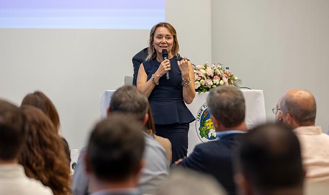 Konak Belediye Başkanı Nilüfer Çınarlı Mutlu, İzmir Ticaret Borsası’nın (İTB) eylül ayı olağan meclis toplantısına kentin kadın belediye başkanları ile birlikte konuk oldu. İTB Başkanı Işınsu Kestelli’nin ev sahipliğinde gerçekleştirilen toplantıda, Akademisyen Soli Özel’in dünya gündemine ilişkin değerlendirmelerinin ardından kadın belediye başkanları da kürsüye çıkarak sunumlar yaptı. Belediyecilik vizyonu ve hizmetleri anlatan sunumunda göreve geldiği günden bu yana mazeret üretmeden çalıştıklarını belirten Başkan Mutlu, barınma hakkının önemine vurgu yaparak öncelikli gündemlerinin kentsel dönüşüm çalışmaları olduğunun altını çizdi.