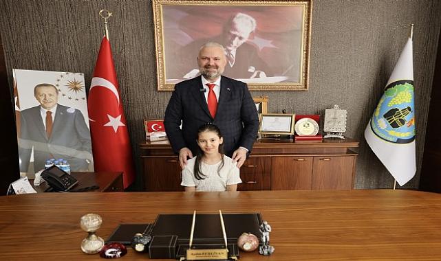 Koltuğunu devreden Başkan Aydın Pehlivan, Aybüke Kara’ya, “Kader gayrete aşıktır. Sizler çok çalışarak, bu ülkenin yarınları olacaksınız. Bizlerin ortaya koyduğu her hizmeti, ülkemize ve insanlığa daha da geliştirerek yayacaksınız. İstiklalimizin kurtarıcısı ve Cumhuriyetimizin Kurucusu Ulu Önder Gazi Mustafa Kemal Atatürk nasıl ki çocukların önemini ve yarınları görerek, çalışmalarını bu doğrultuda yaptıysa, biz de en büyük yatırımımızı çocuklarımız ve gençlerimiz için yapıyoruz. Eğitim desteklerimiz, kütüphanelerimiz, çocuk köyümüz ve nice hizmetimizle, yarınımız olan evlatlarımızın hizmetindeyiz” dedi.