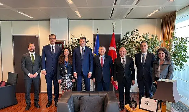 Başkan Soyer ile Avrupa Komisyonu Türkiye Direktörü Henrike Trautmann’ın bir araya geldiği toplantıda Avrupa Sürdürülebilir Kalkınma Fonu, Denizcilik karbonsuzlaştırma fonu, elektrikli feribot, otobüs filosu projeleri ve hem İzmir’in kent ekonomisi hem de iklim krizi ile mücadele için önem arz eden yenilenebilir enerji projeleri ele alındı. İzmir Limanı'nın Türkiye’nin ihracatı için öneminden bahseden Başkan Soyer, İzmir’deki uluslararası fuarların da önemini vurguladı.