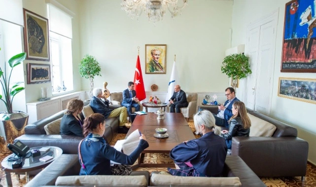 İspanya Büyükelçiliği Misyon Şefi Yardımcısı Héctor Castañeda ve İzmir Fahri Konsolosu Muharrem Kayhan, İzmir Büyükşehir Belediye Başkanı Tunç Soyer’i ziyaret etti. Başkan Soyer ziyarette İspanya’daki belediyeleri Eylül ayında İzmir’de yapılacak uluslararası gastronomi fuarı Terra Madre’ye davet etti.