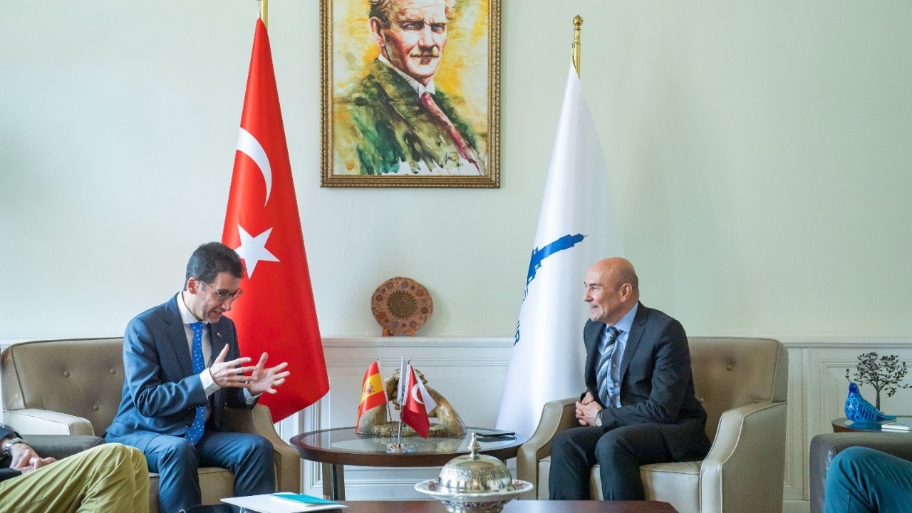 İspanya Büyükelçiliği Misyon Şefi Yardımcısı Héctor Castañeda ve İzmir Fahri Konsolosu Muharrem Kayhan, İzmir Büyükşehir Belediye Başkanı Tunç Soyer’i ziyaret etti. Başkan Soyer ziyarette İspanya’daki belediyeleri Eylül ayında İzmir’de yapılacak uluslararası gastronomi fuarı Terra Madre’ye davet etti.