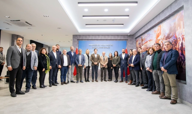 İzmir Büyükşehir Belediye Başkanı Tunç Soyer, CHP İzmir İl Başkanlığı’nı Alsancak’taki yeni açılan il binasında ziyaret etti. İl Başkanı Deniz Yücel ve yönetim kurulu üyeleriyle bir araya gelen Başkan Soyer, yeni binanın hayırlı uğurlu olmasını diledi ve yeni yılda daha da yüksek başarılara imza atılması temennisinde bulundu