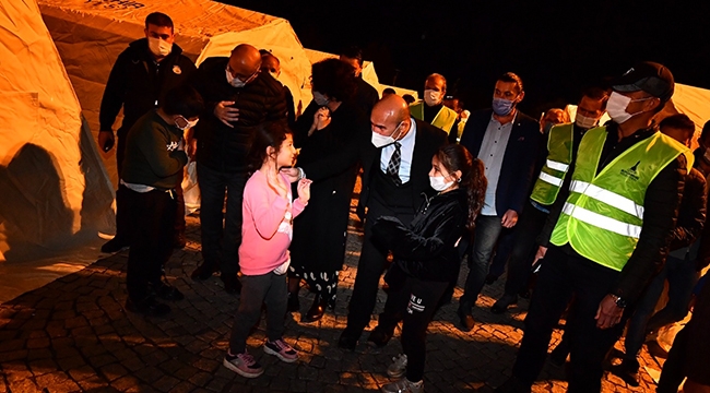 İzmir Büyükşehir Belediye Başkanı Tunç Soyer, depremzedeler için Bornova Aşık Veysel Rekreasyon Alanı’nda kurulan çadır kentteki yurttaşları ziyaret etti. Eşi ve kızıyla birlikte depremzedelerin sorunlarını dinleyen Başkan Soyer, tüm ihtiyaçları gidermek için çalışmaya devam edeceklerini söyledi.