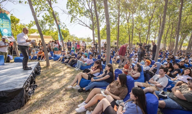 İzmir Büyükşehir Belediye Başkanı Tunç Soyer, İnciraltı Kent Ormanı’nda 17-21 Mayıs tarihleri arasında sürecek İzmir Gençlik Festivali’nin ilk gününde gençlerle ilgili yeni projelerin müjdesini verdiği bir tanıtım toplantısına ev sahipliği yaptı. Sunum öncesinde kamp alanını ziyaret eden Başkan Tunç Soyer, 46 şehir 84 üniversiteden kente gelen gençlerle sohbet etti. Başkan Soyer'in müjdeleri gençler tarafından alkışlarla karşılandı.