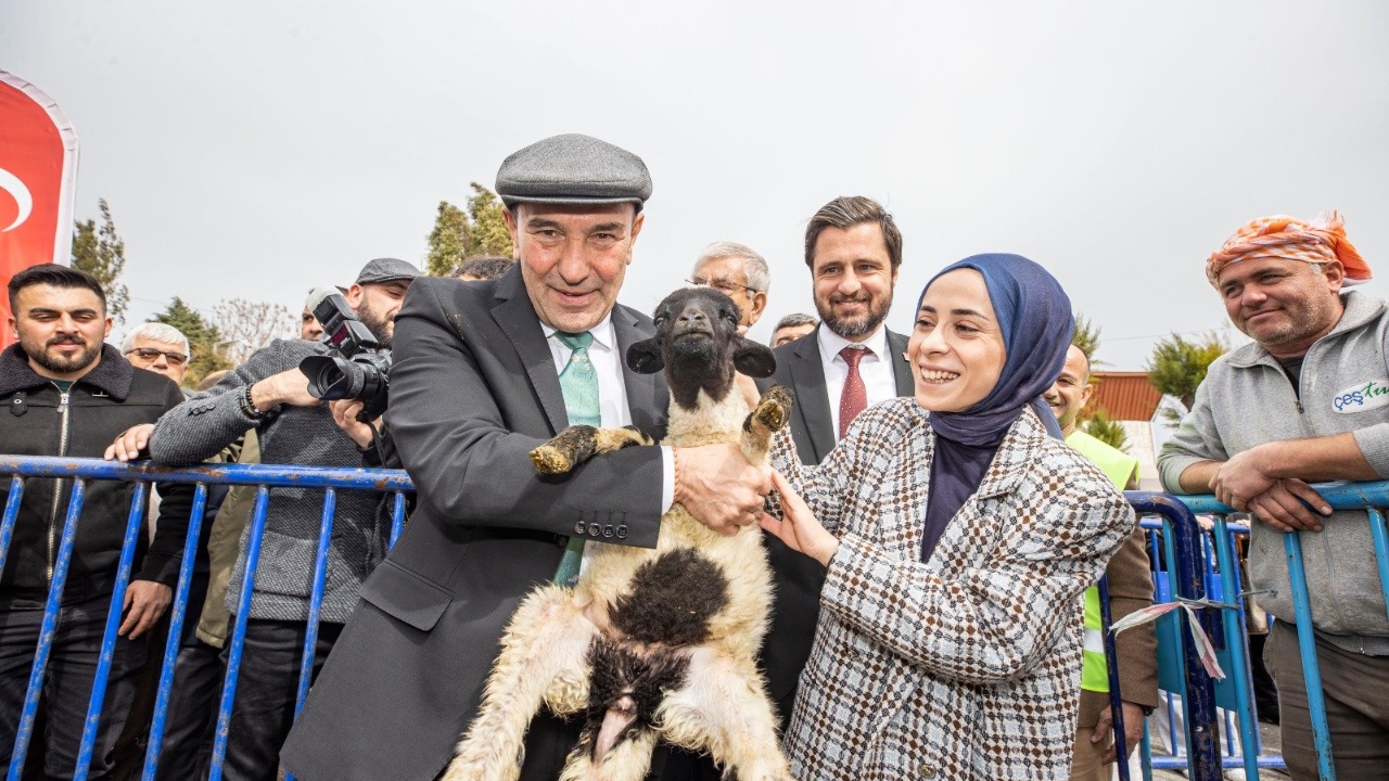 İzmir Büyükşehir Belediye Başkanı Tunç Soyer, Urla'da küçükbaş hayvan dağıtım törenine katıldı. “Başka Bir Tarım Mümkün” vizyonuyla küçük üreticiye destek vermeyi sürdürdüklerini belirten Soyer, “Küçükbaş hayvanın sütünü üreticiden iki misli fiyatla alıyoruz. Üreteceğimiz süt mamulleri de kentlinin ihtiyaç duyduğu lezzetli ve sağlıklı ürünler olacak” dedi.
