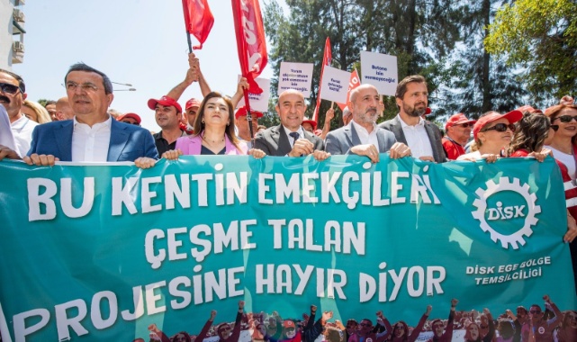 Cumhuriyet Halk Partisi (CHP) Genel Başkan Yardımcısı Ali Öztunç, İzmir Büyükşehir Belediye Başkanı Tunç Soyer, CHP İzmir Milletvekili Sevda Erdan Kılıç, Konak Belediye Başkanı Abdül Batur ve CHP İzmir İl Başkanı Deniz Yücel, meslek odaları, sendikalar ve sivil toplum kuruluşlarının temsilcileri ile Kültürpark Lozan Meydanı’nda buluştu. “Bu kentin emekçileri Çeşme talan projesine hayır diyor” pankartının arkasında kortej Cumhuriyet Meydanı’na yürüdü. Yürüyüşte sık sık “İzmir Çeşme’ye sahip çık”, “Kurtuluş yok ya hep beraber ya hiç birimiz” sloganları atıldı.