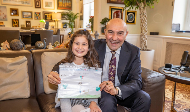 Başkan Soyer’in ikinci konuğu 8 yaşındaki Esila Dora Badak’tı. Esila, Başkan Soyer’in hayvan sevgisini bildiğini ifade ederek “Size hayvan sevgisi konulu bir resim çizmek istedim. Çevreye duyarlılığınız ve hayvanlara verdiğiniz değer benim için çok kıymeti. Sizi çok seviyorum” dedi.