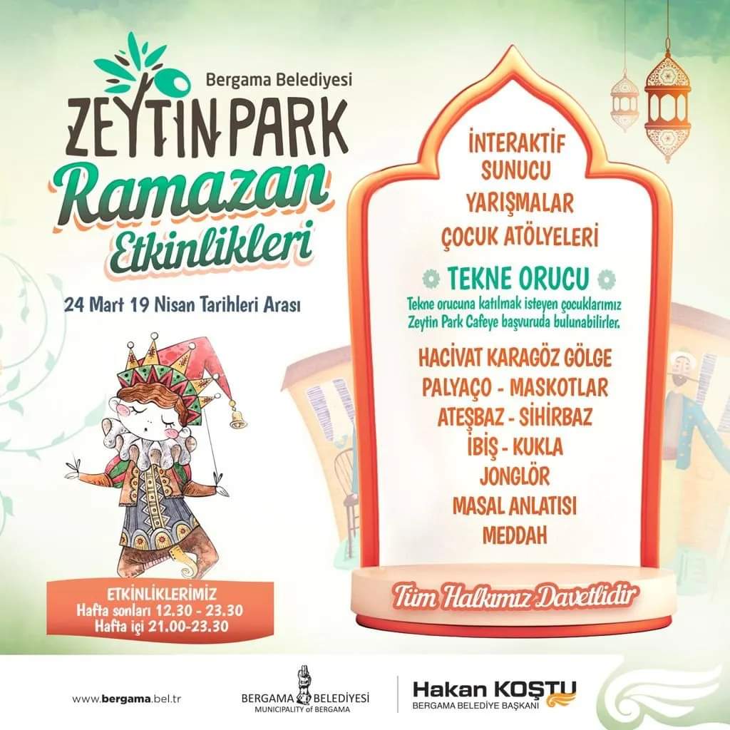 Bu yıl iki ayrı noktada Zeytinpark ve Ilıca Tesisleri’nde dolu dolu hazırlanan etkinlikler bu akşam iftar sonrası Saat 21.00’den itibaren başlıyor. Her iki yerde düzenlenen programlarda birçok etkinlik hazırlandığını ifade eden Belediye Başkanı Hakan Koştu, “Tüm hemşehrilerimi saat 21.00’den itibaren etkinliklerimize katılmaya Ramazan gecelerini aileleri ile birlikte hoşça vakit geçirmeye davet ediyorum” dedi.