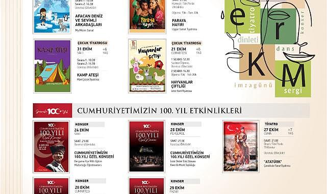 Cumhuriyetimizin 100. Yılına özel etkinliklerin de düzenleneceği BerKM’de konser ve tiyatro gösterileri de yapılacak. Cumhuriyetimizin 100. Yılı Özel Konser serisinde 24 Ekim saat 21.00’de Bergama İlçe Milli Eğitim Müdürlüğü Öğretmenleri, 26 Ekim saat 21.00’de İzmir Devlet Türk Dünyası Dans ve Müzik Topluluğu sahne alacak. 28 Ekim saat 21.00’de Şef Derya Çakı’nın yönetiminde Bergama Belediyesi Yaşamboyu Eğitim Merkezi Türk Halk Müziği konseri, 29 Ekim saat 21.00’de Şef R. Oğuz Özvardar yönetiminde Yaşamboyu Eğitim Merkezi Türk Sanat Müziği konseri verilecek. 27 Ekim saat 21.00’de Çanakkale Sanat Tiyatrosunun “Atatürk” konulu gösterisi sahne alacak.