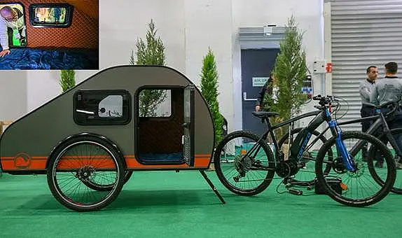 Disk freni ve güneş enerjisi paneli paketi de bulunan karavanın bisiklet turlarıyla ilgilenenler için önemli bir alternatif sunması bekleniyor. Fevzi Aras, salgın süreciyle insanların farklı alışkanlıklar kazandığını, doğaya daha çok yaklaştığını, bu anlamda karavanın ön plana çıktığını anlattı. Bisikletin de en sevilen doğa sporlarından olduğunu, insanların daha özgür hissedebilmek için uzun seyahatlere çıktığını dile getiren Aras, bu turlarda konaklamanın da zorlukları olduğuna işaret etti. Klasik bisikletler için ağır olan bu tip aparatların elektrik destekli bisikletlerle taşınabilir hale geldiğini, buradan yola çıkarak bisiklet ve kampı birleştirme hayaliyle yola çıktığını kaydeden Aras, şöyle konuştu: “Bisiklet kullanıcıları genelde çadır tercih ediyordu. Bu ürünün avantajı, yalıtımlı olması. Yani içine girdiğinizde mevsim gözetmeksizin size kamp olanağı sunuyor. Yerden yüksek olması nedeniyle daha güvenli, yani doğadaki yabani hayvanlara karşı çadırdan çok daha korunaklı. Farklı opsiyonlarımız var. Önüne tente yapabiliyoruz, sineklik var. Pileli perde yapabiliyoruz ve bataryaları şarj edebileceğiniz ekstra bir güneş paneli paketimiz var.