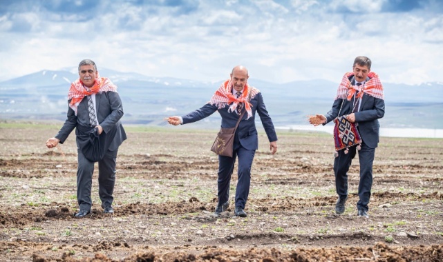 İzmir Büyükşehir Belediye Başkanı Tunç Soyer, Kars’ın Susuz ilçesinde üreticilere tohum dağıttı ve sonrasında tarlaya inerek ekim yaptı. Başkan Soyer, “Bugün aslında sadece buğday ve arpa tohumunun ekimini yapmıyoruz. Biz aslında birliğin, dostluğun, kardeşliğin tohumunu ekiyoruz. Bire bin, bire milyon veren bir refahın, bereketin hasadını yapacağız"dedi.