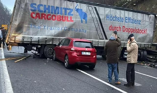 Anadolu Otoyolu'nun Bolu Dağı Tüneli çıkışı 3. viyadük üzerinde Romanya uyruklu Iona V'nin idaresindeki OT 16 YKW plakalı tır, sürücüsünün direksiyon hakimiyetini kaybetmesiyle makasladı. Aynı istikamette ilerleyen ve sürücüsünün ismi öğrenilemeyen 06 KS 219 plakalı otomobil, makaslayan tıra çarptı.