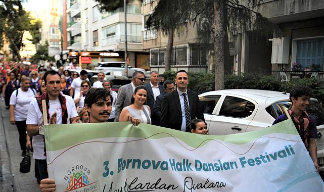 Bornova Halk Dansları Festivali, ilçenin sembol alanlarından Küçükpark’tan Büyükpark’a uzanan kortej geçişi ile başladı. Yöresel kıyafetlerle Uğur Mumcu Kültür ve Sanat Merkezi önünde toplanan halk oyunları ekipleri, Suvari Caddesi üzerinden Ayfer Feray Açık Hava Tiyatrosu’na yürüdü.