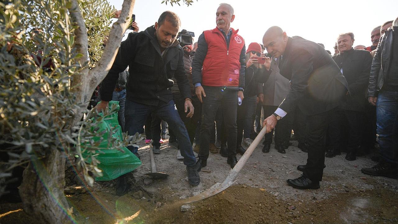 Açıklamanın ardından katılımcılar alana zeytin fidanı dikti. İzmir’deki deprem gerçeğine ve Buca’nın deprem toplanma alanı ihtiyacına dikkat çekmek için ise İzmir Büyükşehir Belediyesi tarafından da simgesel olarak çadır kuruldu.