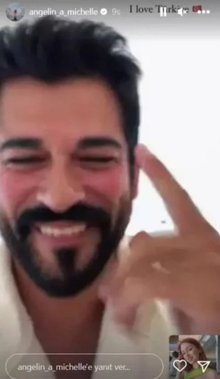 Amerikalı model Angelina Michelle, Instagram hesabından oyuncu Burak Özçivit ile görüntülü görüşmesini paylaştı. Üzerine de İngilizce “Türkiye’yi seviyorum” diye yazdı.