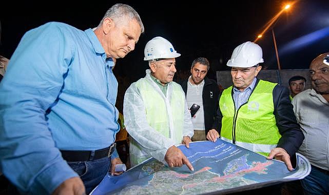 Gecenin ilerleyen saatlerinde alana gelerek yerin yaklaşık 8 metre altında devam eden çalışmaları inceleyen Başkan Soyer, “İzmirliler rahat uyusun. Onlar için olağanüstü titizlik ve özveri ile çalışan büyük bir ekip var” dedi. Soyer, işçilere tatlı da ikram etti.