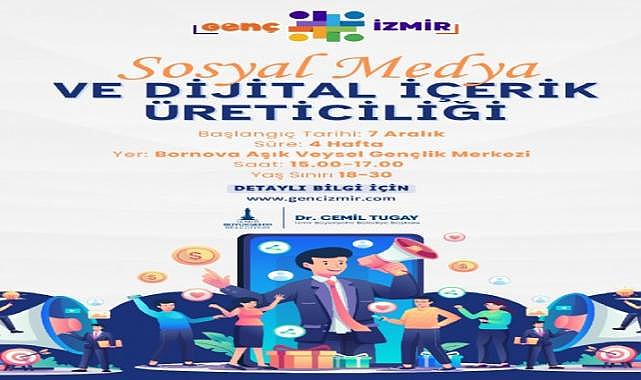 İzmir Büyükşehir Belediye Başkanı Dr. Cemil Tugay’ın “genç dostu kent” hedefi doğrultusunda 15-30 yaş arası gençler için hayata geçirilen projeler hız kesmeden devam ediyor. İzmirli gençler, Aralık ve Ocak aylarında iki yeni atölye programına katılarak hem eğlenecek hem de kariyerlerine yatırım yapma fırsatı yakalayacak. Gençlik ve Spor Hizmetleri Dairesi Başkanlığı’na bağlı Gençlik Çalışmaları Şube Müdürlüğü bünyesinde faaliyet gösteren Genç İzmir’in yürüttüğü çalışma doğrultusunda “Pasta Yapımı” ve “Sosyal Medya ve Dijital İçerik Üreticiliği” atölyeleri düzenlenecek.