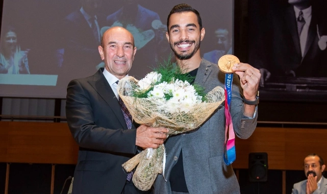 Arıcan’ın ardından Başkan Soyer, Büyük Kadınlar Türkiye Kupası Şampiyonu olan İzmir Büyükşehir Belediyesi Su Topu Kadın Takımı’nı sahneye davet etti. Başkan Soyer, İzmir Büyükşehir Belediyesi Gençlik ve Spor Kulübü’nün kısa süre önce faaliyetlerine başlayan su topu şubesinin iki ayda yedi kupa kazandığını ve milli takımlarımıza onlarca oyuncu gönderme başarısı gösterdiği bilgisini vererek sporcuları teker teker tebrik etti.