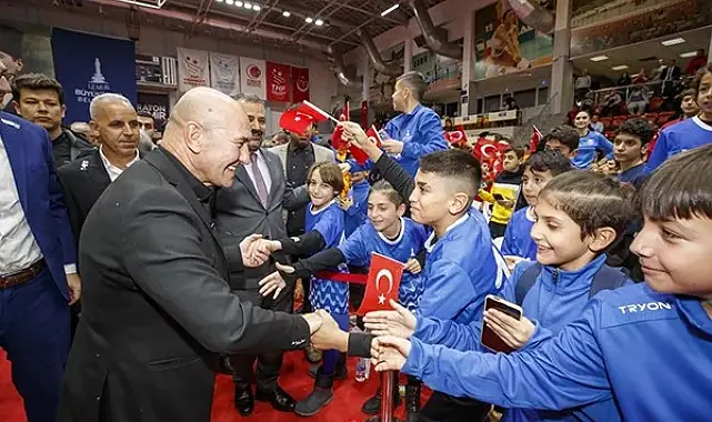 Programda konuşan İzmir Büyükşehir Belediye Başkanı Tunç Soyer, zor zamanlardan geçtiklerini söyledi. İzmir’in tarihinin en büyük felaketleriyle karşılaştığını anlatan Başkan Soyer, “Depremler, tsunamiler oldu ve geçen gün deniz taştı. Büyük felaketler yaşadık. Bütün bu felaketler içerisinde yüzümüzü güldüren tek şey sizin sevinciniz, sizin mutluluğunuz. Ben de sizi çok seviyorum. Atamız fikri hür, vicdanı hür, irfanı hür nesiller yetiştirmeyi miras bıraktı. Emin olun geleceğimizi sizler aydınlatıyorsunuz. Sizlerin güler yüzünü gördükçe, geleceğe dair umutlarımız büyüyor. Bütün destekler size feda olsun. Çok daha fazlasını hak ediyorsunuz. Özellikle amatör spor kulüplerimizin hocalarına, yöneticilerine seslenmek istiyorum. Siz kocaman yüreklerinizle bu çocuklara sahip çıkıyorsunuz ya helal olsun size. İyi ki varsınız, geleceğe dair bizleri umutlandırıyorsunuz. Bugüne kadar yaptıklarımızın çok daha fazlasını sizler için yapmaya devam edeceğim” dedi.