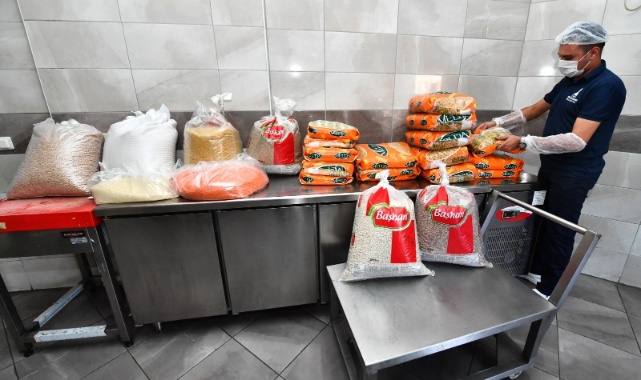 İzmir Büyükşehir Belediyesi Sosyal Hizmetler Dairesi Başkanlığı Aşevleri Şube Müdürlüğü ekiplerine ait araçlarla ulaştırılan kolilerde kuru fasulye, nohut, yeşil mercimek, barbunya, kırmızı mercimek, pirinç, bulgur, arpa şehriye, erişte ve makarna bulunuyor.