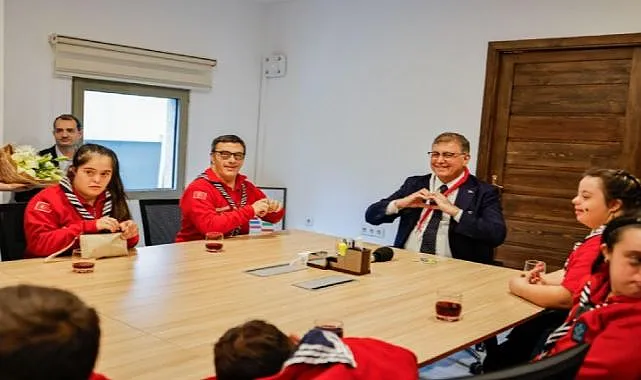 İzcilerle tek tek sohbet eden Başkan Tugay, ziyaret sonunda onlara boyama ve satranç seti hediye etti. Down sendromlu izciler, Başkan Tugay’la hatıra fotoğrafı çektirdi.