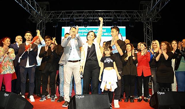 Kınay’ın konuşmasının ardından Shuzar Muzika sahne aldı. Eğlenceli şarkılarıyla sahne alan grup, Karabağlarlıları doyasıya eğlendirdi. Coşkuyla seçim zaferini kutlayan Karabağlarlılar, şarkılara eşlik edip sevdikleriyle dans etti.