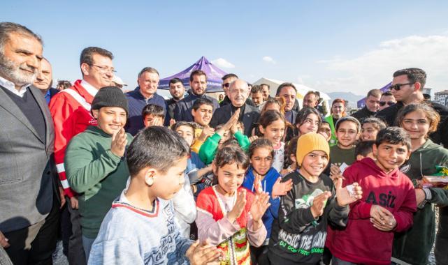 CHP Genel Başkanı Kemal Kılıçdaroğlu, deprem bölgesindeki incelemeleri kapsamında İzmir Büyükşehir Belediyesi’nin Hatay’daki Afet Koordinasyon Merkezi’ne de gitti. Çadır kentte kurulan Masal Evi’nde çocuklarla bir araya gelen ve görevlilerden bilgi alan Kılıçdaroğlu, “Sizlerin katkısıyla bu sorunlar kısa sürede aşılacak. Tüm çalışanlara ve Tunç Soyer’e teşekkür ederim” dedi.