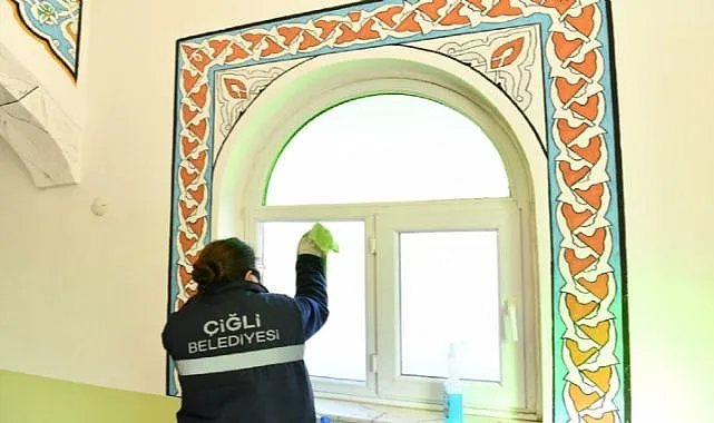 Temizlik çalışmaları kapsamında cami ve mescitlerin halıları detaylı süpürülüyor, tozlar alınarak genel hijyen sağlanıyor. Çiğli Belediyesi’nin cami ve mescitlere yönelik temizlik çalışmaları, Ramazan ayı boyunca da devam edecek.