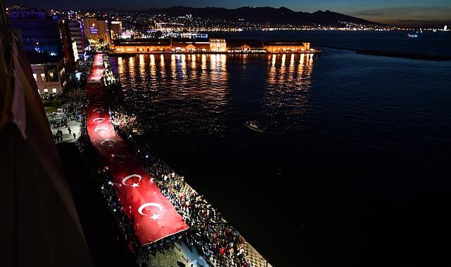 Saatler 19.23’ü gösterdiğinde büyük bir katılımla yürüyüş ve fener alayı düzenlenecek. Saat 20.23’te Cumhuriyet Meydanı’nda zeybek gösterisi ve Cumhuriyet Halk Korosu ile birlikte Cumhuriyet coşkusu tüm şehirde yankılanacak. Aynı saatlerde Büyükşehir Belediyesi'nin araba vapuru ve yolcu gemileri Göztepe-Konak-Bostanlı hattında marşlar eşliğinde muhteşem bir lazer gösterisi yapacak.