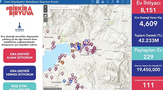 İzmir Büyükşehir Belediyesi’nin depremzedeler için başlattığı dayanışma kampanyasında sona gelindi. “Bir Kira Bir Yuva” kampanyası kapsamında taahhüt edilen kira desteği 42 milyon 233 bine ulaştı. Kampanya 7 Aralık Pazartesi günü kapanacak.
