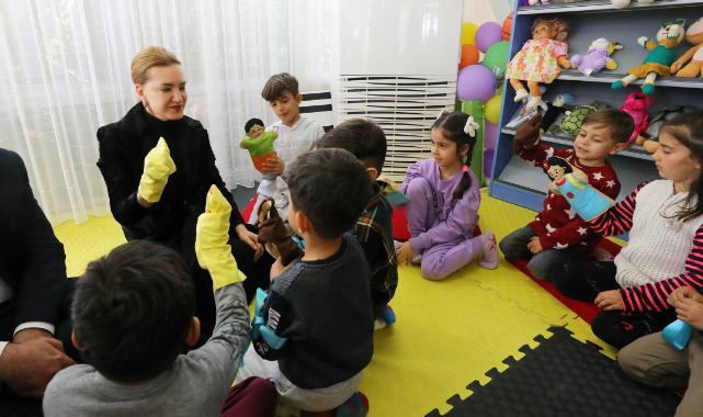 Açılışın ardından Rektör Hotar ve törene katılanlar, çocuklarla birlikte kreşteki ilk derse katılarak dersi birlikte işlediler.