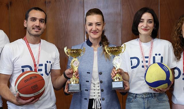 Gençlik ve Spor Bakanlığı tarafından Cumhuriyet’in kuruluşunun 100'üncü yılı kutlamaları kapsamında İzmir’de düzenlenen Kamu Spor Oyunları’na Dokuz Eylül Üniversitesi (DEÜ) damgasını vurdu. Turnuvada DEÜ’lü sporcular, 3x3 Erkek Basketbol turnuvasında birincilik; Kadın Voleybolunda ise ikincilik elde ettiler. Tamamı doktorlardan oluşan sporcular, başarılarını paylaşmak için DEÜ Rektörü Prof. Dr. Nükhet Hotar’ı ziyaret ettiler.