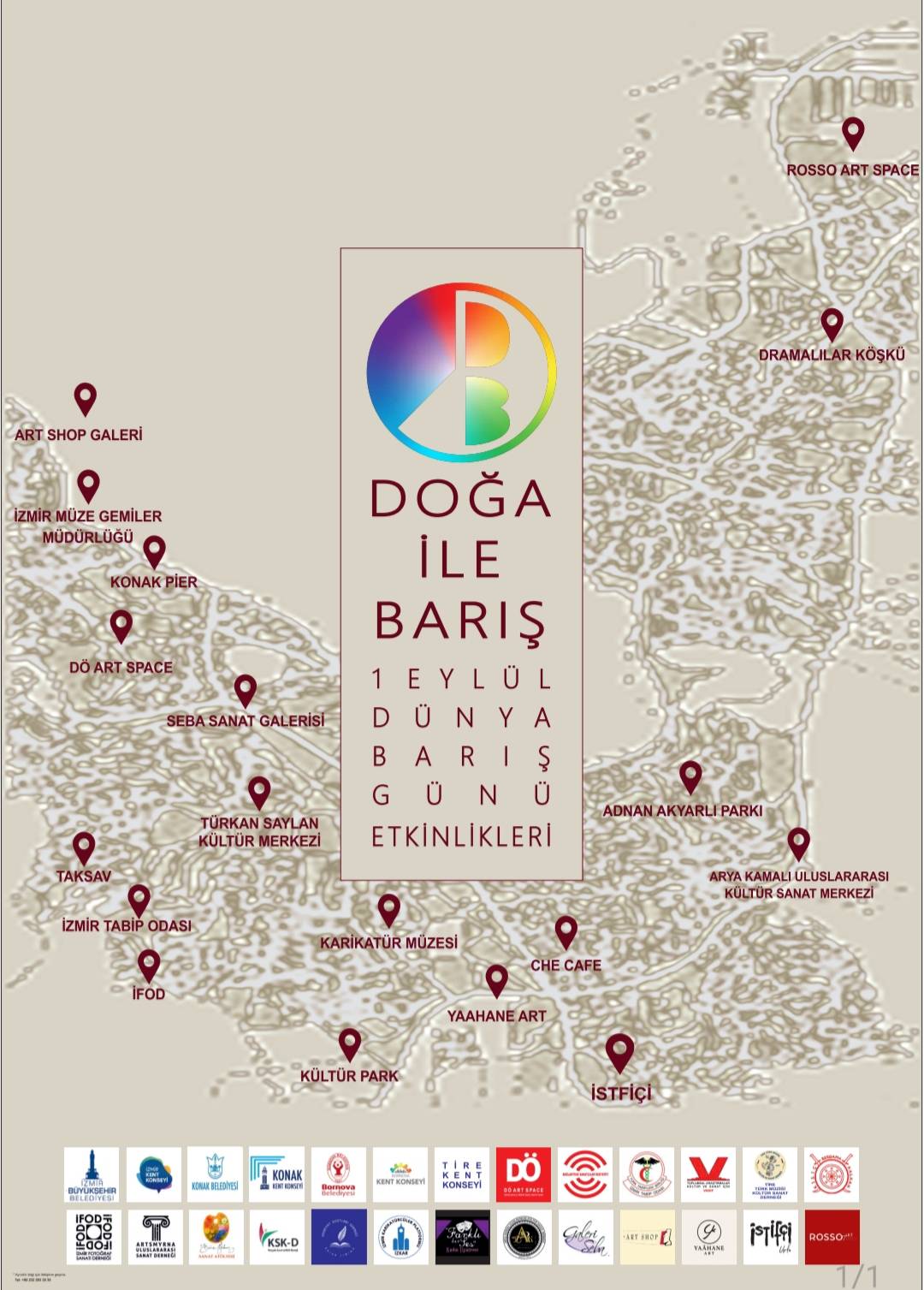Etkinlikler, Bergama ve Tire’den katkı sağlayan sanatçılar ve diğer kent konseylerinin desteğiyle kentin kolay ulaşılabilir noktalarında planlandı. Ayrıca İzmir Enternasyonal Fuarı süresince, IEF alanında doğa ile barış temalı etkinlikler de gerçekleştirilecek. Konak, Bornova, Karşıyaka ve Karabağlar’daki farklı noktalarda düzenlenecek program sayesinde halk, sanatla dolu bir gün geçirme fırsatı bulacak.