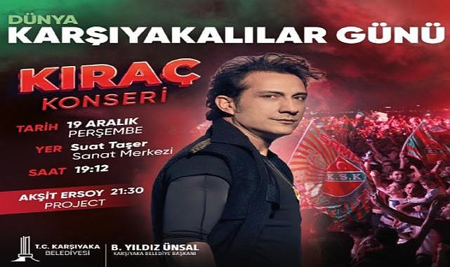 Karşıyaka Spor Kulübü’nün kuruluş yılı olan 1912’ye ithafen her yıl 19 Aralık’ta kutlanan Dünya Karşıyakalılar Günü’ne geri sayım başladı. Bu anlamlı günü unutulmaz bir şölenle taçlandırmaya hazırlanan Karşıyaka Belediyesi, sevilen sanatçı Kıraç’ı Karşıyakalılar ile buluşturacak. Bostanlı Suat Taşer Sanat Merkezi’nde ücretsiz olarak düzenlenecek konser, 19 Aralık Perşembe günü, saat 19.12’de başlayacak. Program kapsamında ilk olarak Karşıyaka Belediyesi ile Ege Fotoğraf ve Sinema Amatörleri Derneği (EFSA) tarafından Dünya Karşıyakalılar Günü temasıyla düzenlenen fotoğraf sergisinin açılışı yapılacak. Ardından da Kıraç sahneye çıkacak, en güzel şarkılarını Karşıyaka için söyleyecek. Kutlama gecesi, saat 21.30’da Akşit Ersoy Project ile devam edecek.