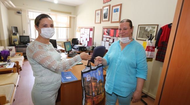 Efes Selçuk Belediye Başkanı Filiz Ceritoğlu Sengel pandemi sürecinde eğitim ve öğretim yılına başlayan öğrenciler için okullarda hijyen kiti dağıttı.