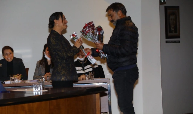 Efes Selçuk Belediyesi Aralık Ayı Meclis Toplantısı birinci oturumu yapıldı. Oturum başlamadan önce MHP Meclis Üyesi İbrahim Gökçe 5 Aralık Türk Kadınına Seçme ve Seçilme Hakkı sebebiyle Efes Selçuk Belediye Başkanı Filiz Ceritoğlu Sengel, kadın meclis üyeleri ve kadın çalışanlara çiçek verdi