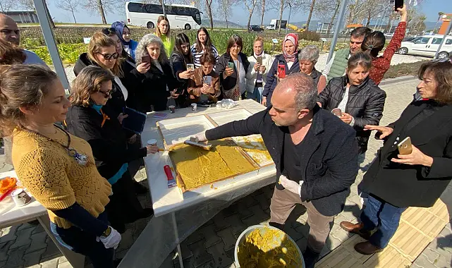 Efes Selçuk ve çevresinde sıklıkla yapılan zeytinyağı sabunu ile ilgili düzenlenen atölyede katılımcılar bilinen yöntemlerin yanı sıra doğru yöntemlerle zeytinyağı sabunu yapım süreci hakkında bilgi edindiler.